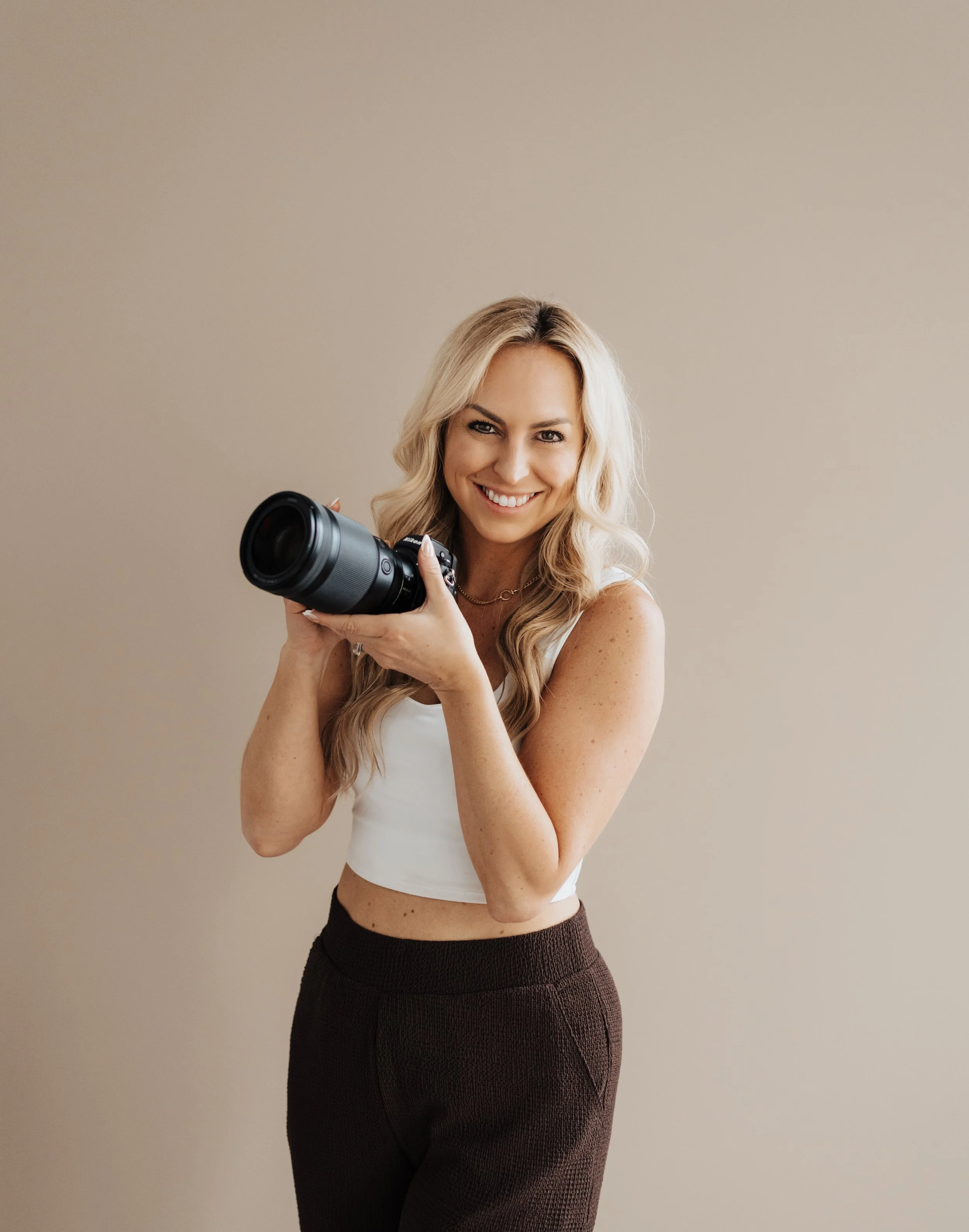 My photography style is deeply influenced by the outdoors, with an emphasis on natural light and the warmth of golden hour. I love creating bright, airy images with rich blacks, a touch of contrast, and a balanced saturation. I also enjoy shooting in studio settings, working out of a few local studios in the area. If you're wondering what to wear for your session, I'd be happy to share my style guide to help you feel your best!