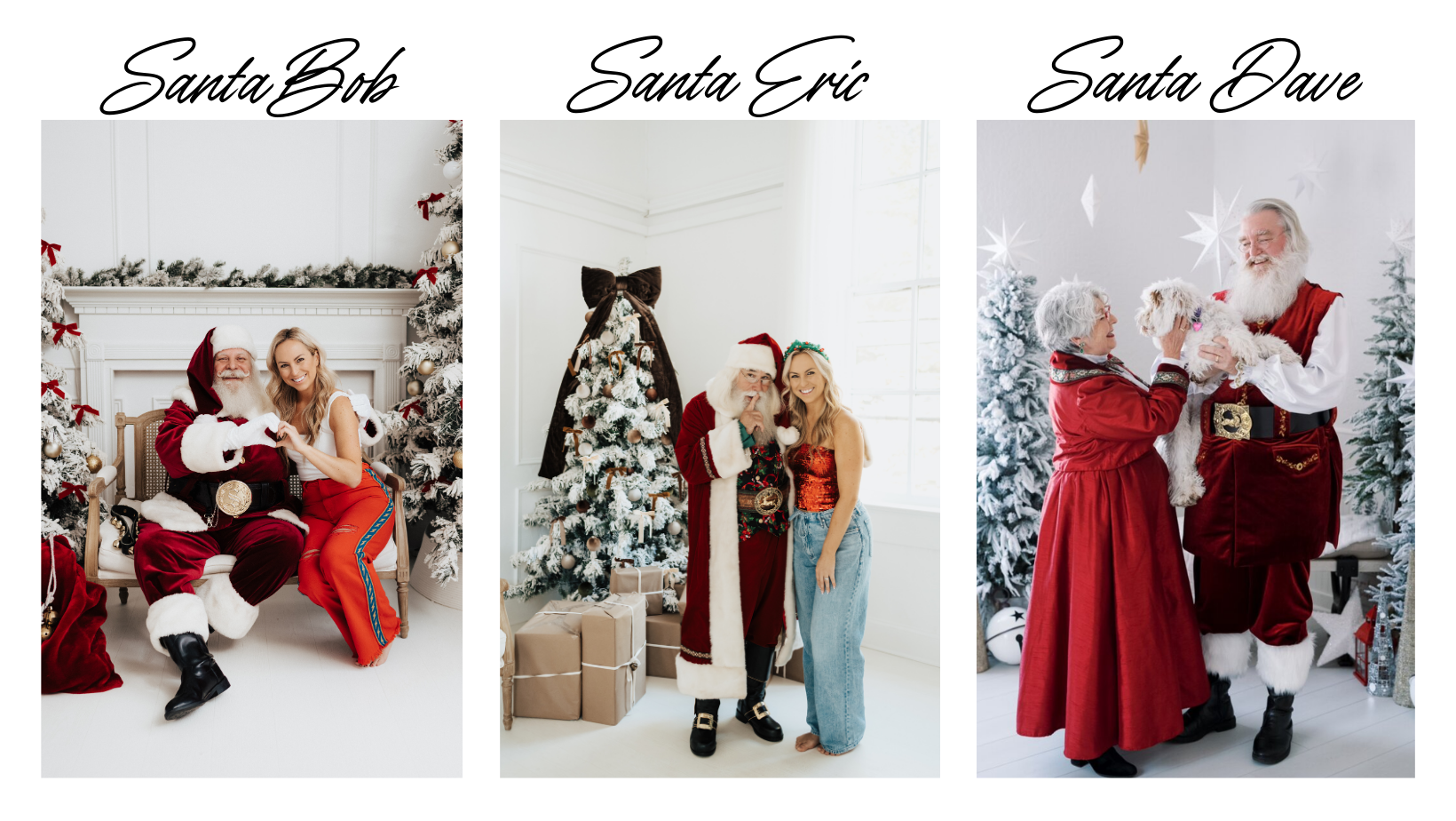 Santa Minis are back—and this year, I'm offering THREE dates (with three Santas) to help more families experience the magic after last year's sessions filled up with a waitlist! Santa sessions will take place in my natural light studio in Downtown Roswell with simple, festive décor. Think timeless and modern! I’ve worked with Santa Eric and Santa Bob before, Santa Dave is new but you’re going to love him! His wife will also be there as Mrs. Clause! You’ll have the opportunity to take photos with or without Santa, just kids or full family included.